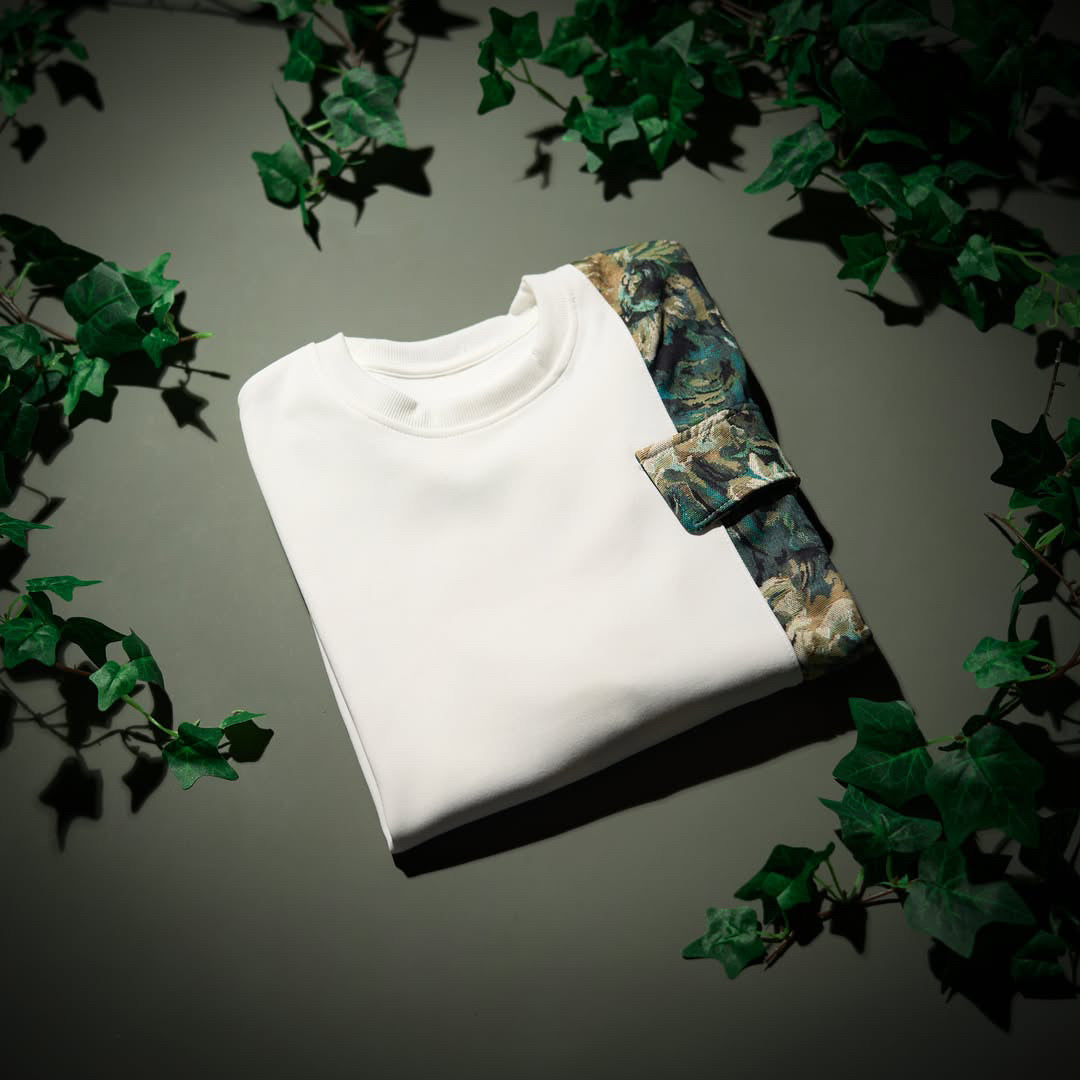 サイドのボタニカルルーズプルオーバーは、きれいめ